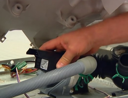 - снял болты и поднял сливной шланг на нужную высоту;