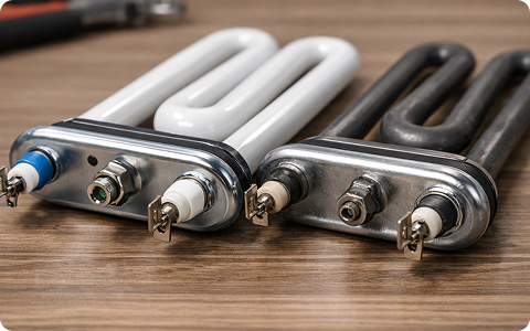 Если упростить до минимума, в стиралке есть «палка‑нагреватель», которая греет воду, — это и есть ТЭН. Классический вариант — металлическая трубка (обычно нержавейка), внутри спираль, вокруг теплоизолирующий наполнитель. Керамический ТЭН — тот же нагреватель, но сверху металлической трубки нанесён слой керамического покрытия, а в некоторых конструкциях нагревающий элемент спрятан в керамическом блоке, который «не контактирует» с водой напрямую.